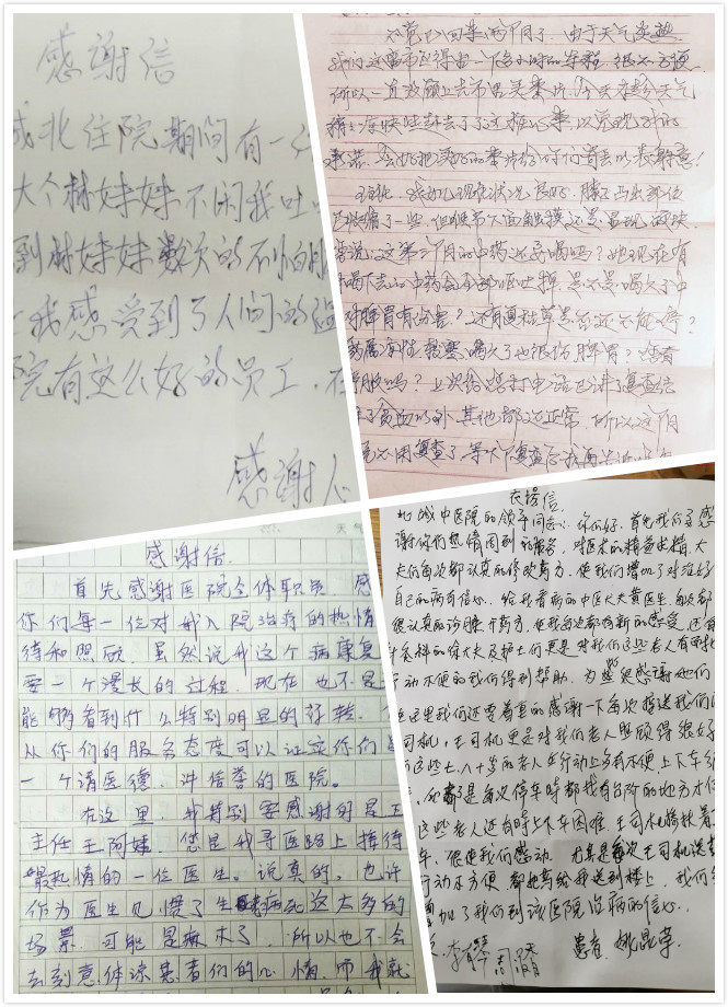 医院里面的这些白衣天使们,他们每天都工作在抢救生命的第一线。他们有着许多医护工作者平凡又感人的故事;他们有着忘我的工作、无私奉献、无怨无悔的精神。这不,在感恩节中,他们换来了患者的微笑,收到了一封封这样热情洋溢的感谢信。